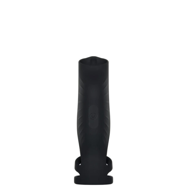Anel peniano recarregável com anel duplo e penetrador. Possui 10 modos de vibração.