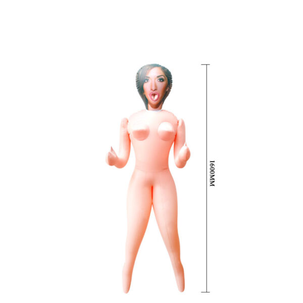 Boneca inflável com rosto 3D, possui 3 orifícios para penetração.