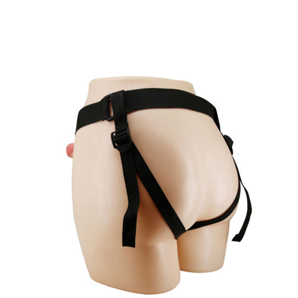 Cinta peniana com pênis oco, possui estimulador clitoriano formato coelho, glande e veias salientes.