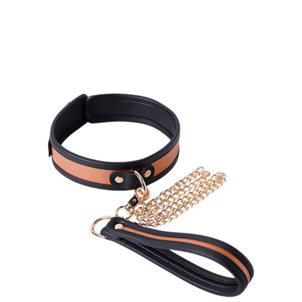 Coleira com Guia de Corrente e Puxador, possui Interior Forrado e Ajuste com Fivela – LUXURY FETISH FUN COLLAR – SD-106
