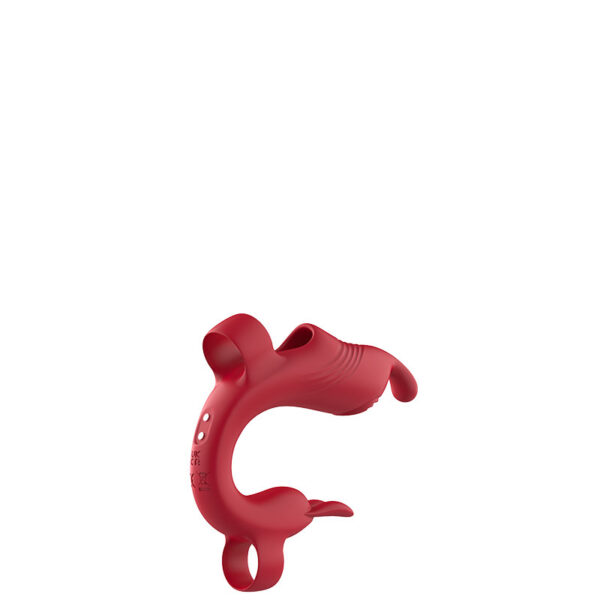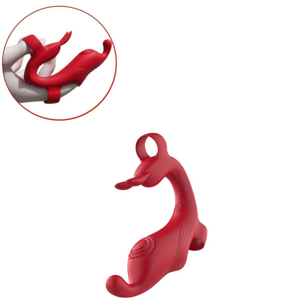Dedeira vibratória recarregável com estimulador clitoriano. Possui 10 modos de vibração.