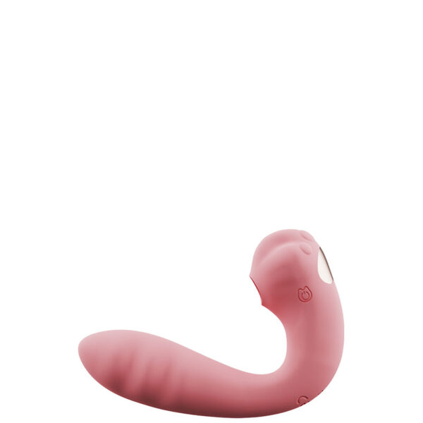 Estimulador clitoriano recarregável com ondas de pressão e penetrador ponto G. Possui 9 modos de vibração e 9 modos de ondas de pressão.