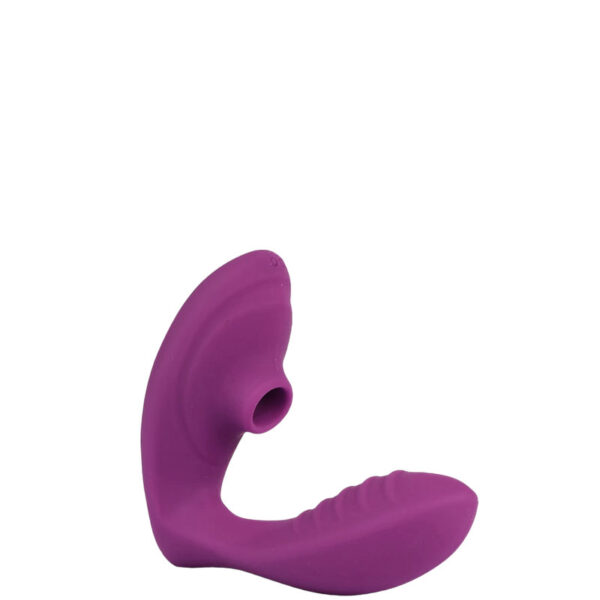 Estimulador clitoriano recarregável com ondas de pressão e penetrador ponto G. Possui 10 modos de vibração e 10 modos de ondas de pressão.