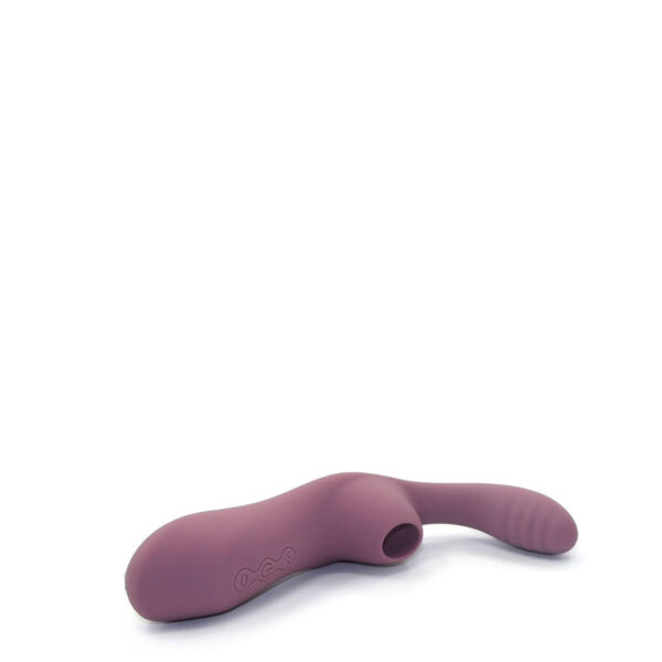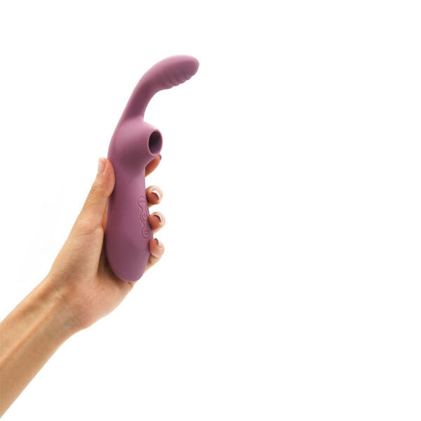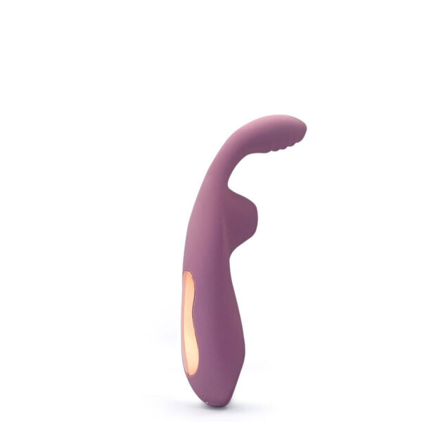 Estimulador recarregável com formato coelho. Possui 7 modos de ondas de pressão e 10 modos de vibração.
