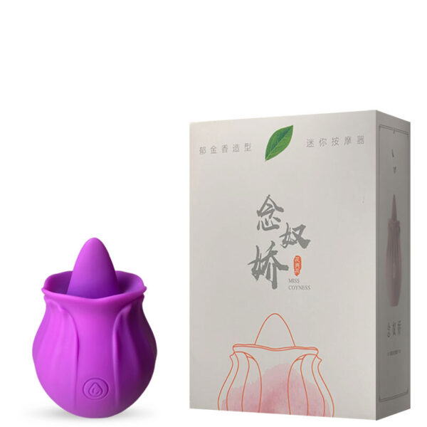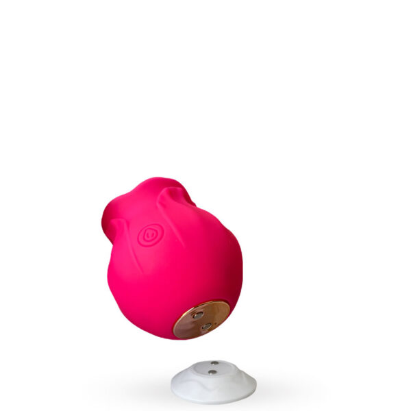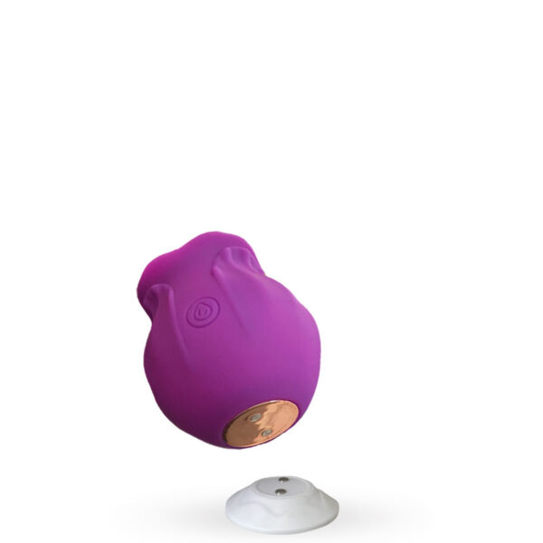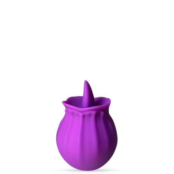 Estimulador recarregável em formato de flor com lingua estimuladora. Possui 10 modos de movimentos.