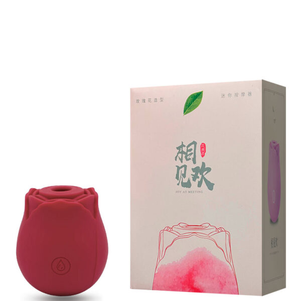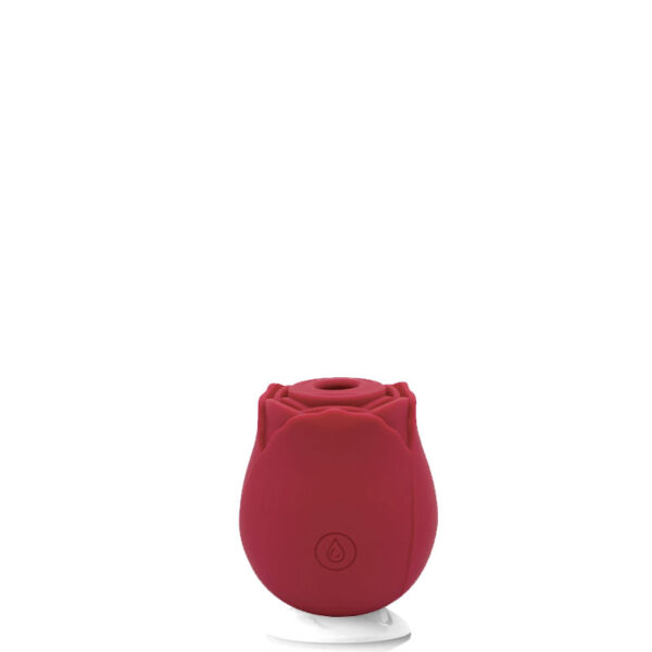 Estimulador recarregável em formato de rosa. Possui 10 modos de ondas de pressão.