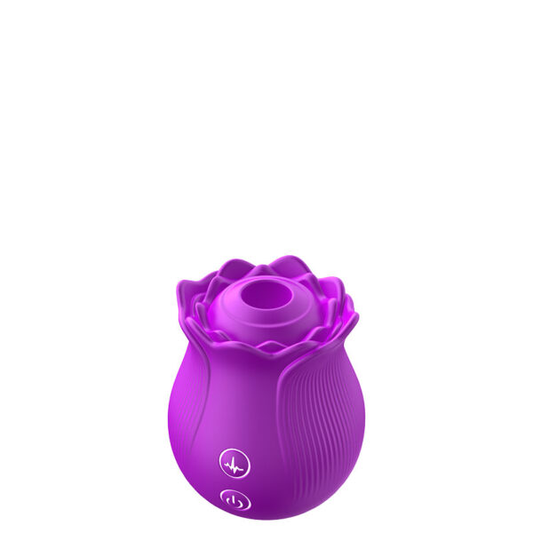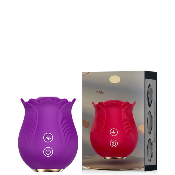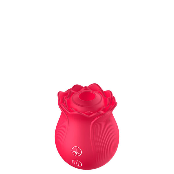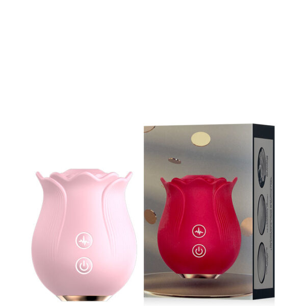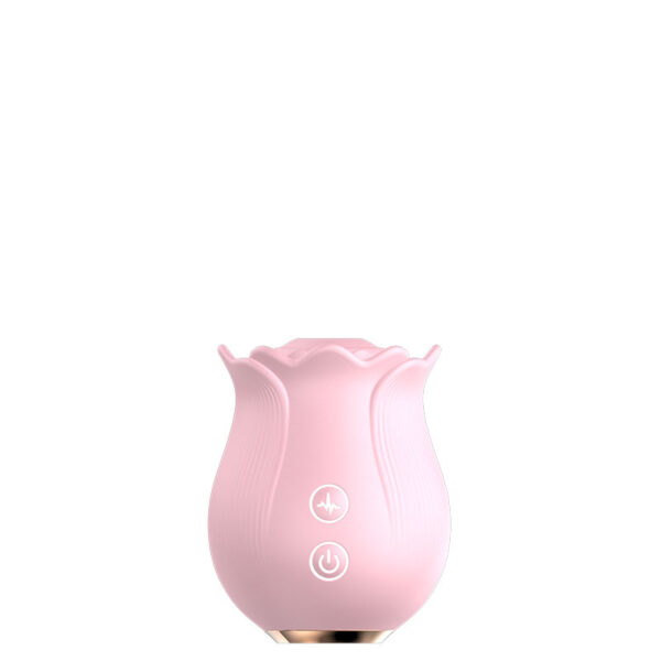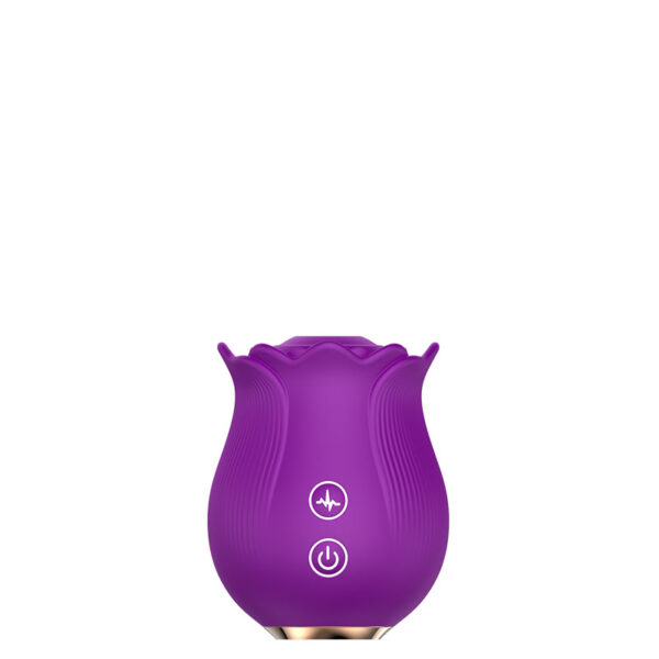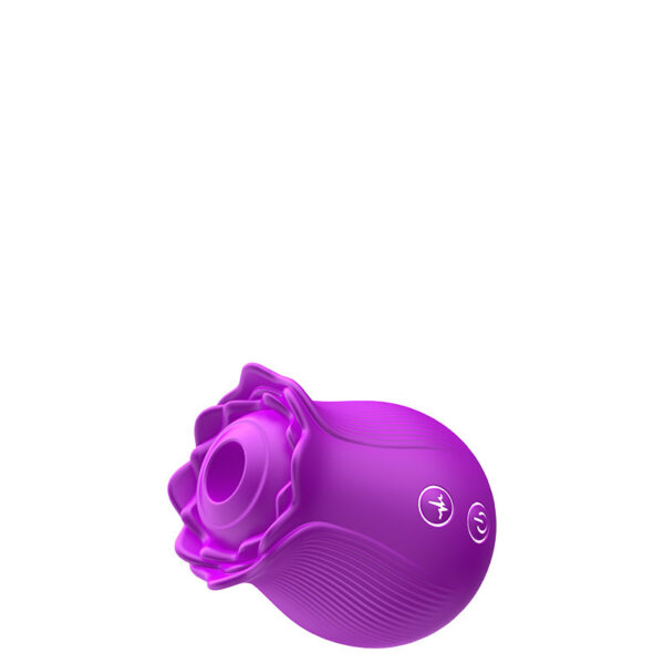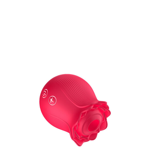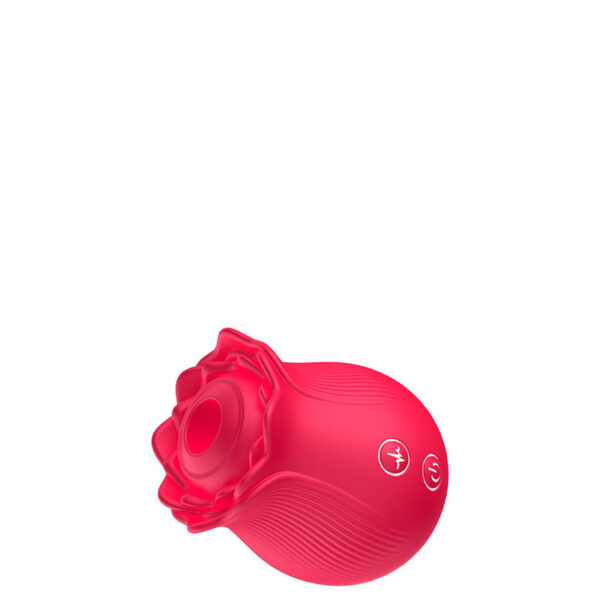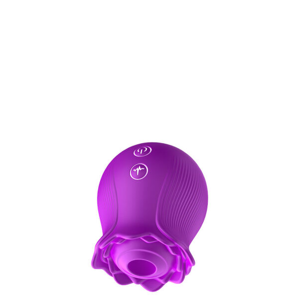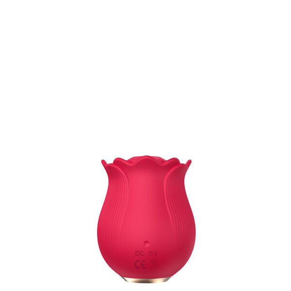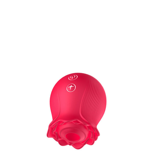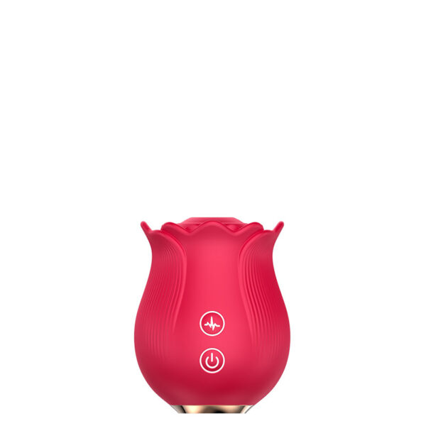 Estimulador recarregável em formato de rosa. Possui 10 modos de ondas de pressão.
