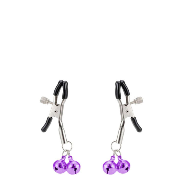 Grampos para mamilos com guizo duplo com presilhas ajustáveis . Material: Metal
