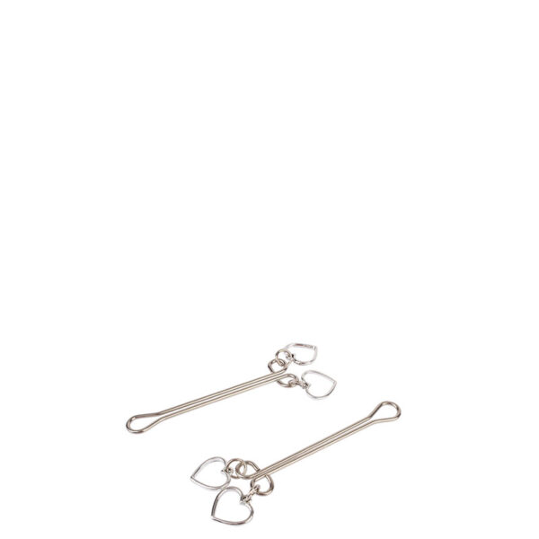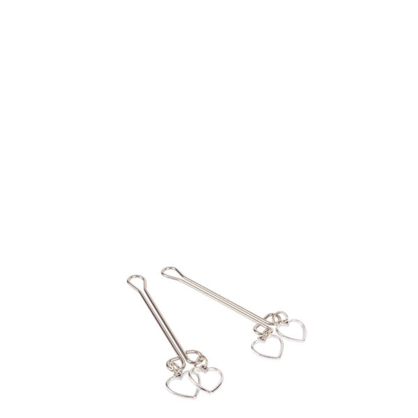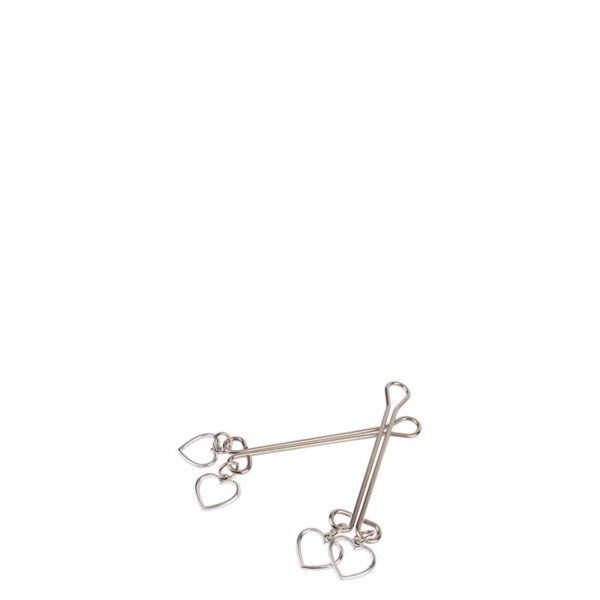 Grampos para mamilos com haste dupla e pingente duplo de coração.