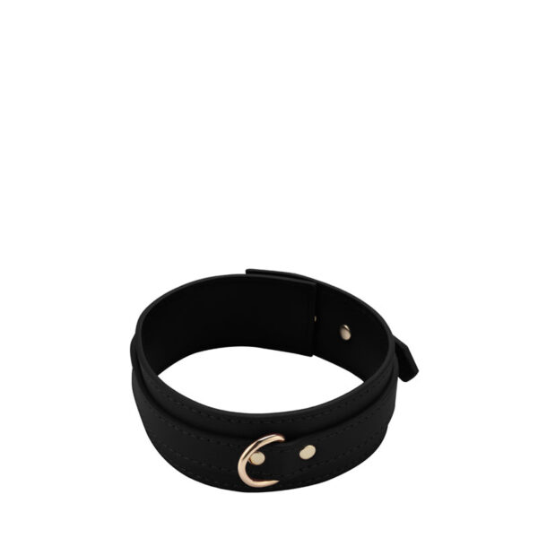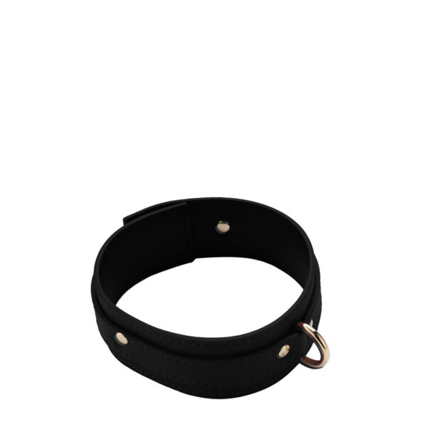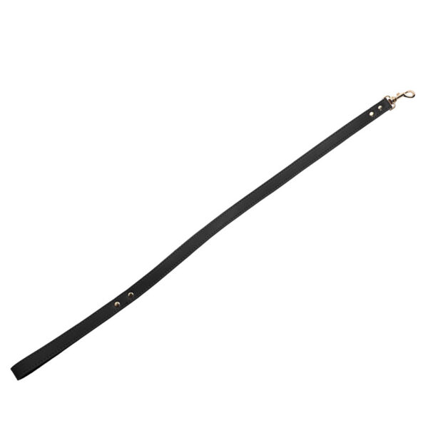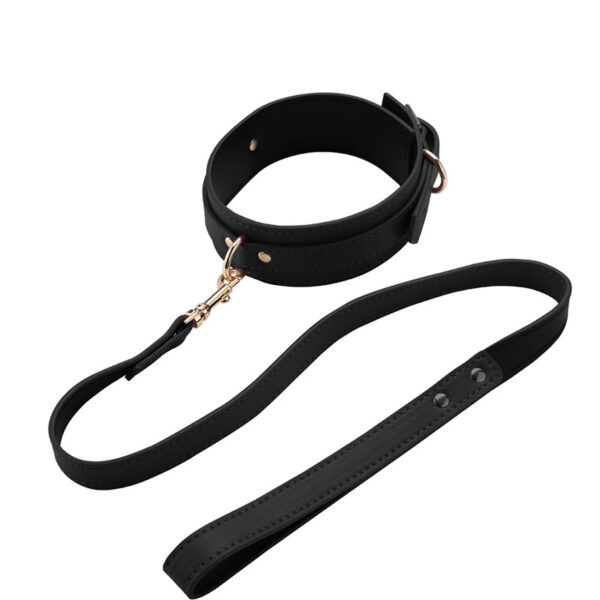 1 coleira , 1 guia com puxador e corrente. Material: Couro sintético e Metal.