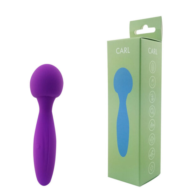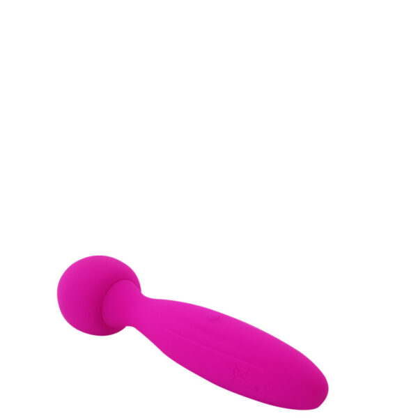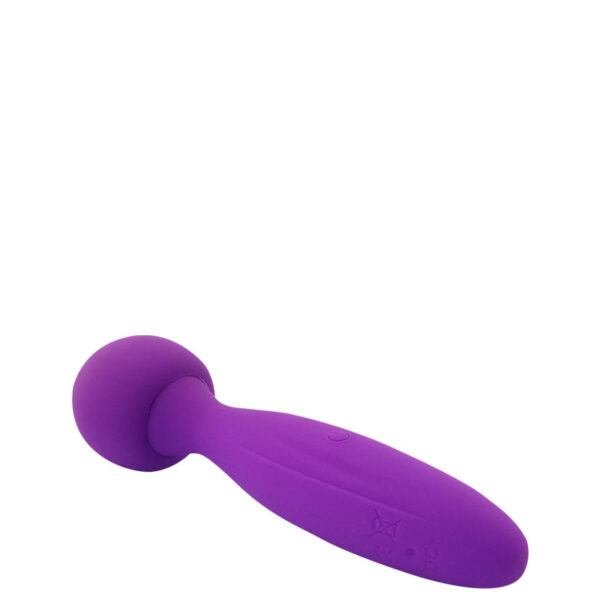 Massageador recarregável corporal com cabeça flexível. Possui 10 modos de vibração.