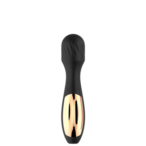 Massageador recarregável corporal com cabeça flexível e corpo texturizado. Possui 10 modos de vibração.