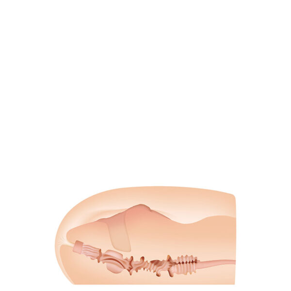 Masturbador bumbum feminino. Possui vagina e ânus penetráveis com túnel interno texturizado.