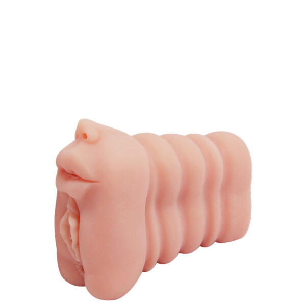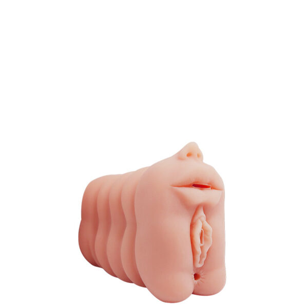 Masturbador com 3 orifícios: boca, vagina e ânus com túnel de penetração texturizado.