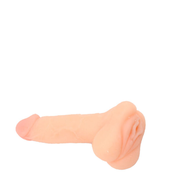 Masturbador formato vagina e pênis realístico com veias salientes e glande.