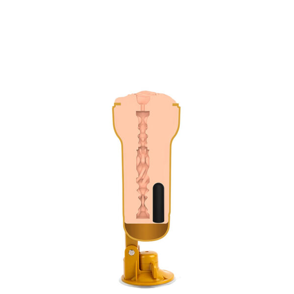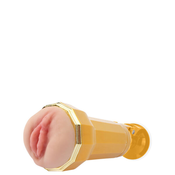 Masturbador masculino formato lanterna com lábios bem demarcados, túnel de penetração ultramacio e saliências internas. Acompanha cápsula recarregável vibratória com 10 modos de vibração.