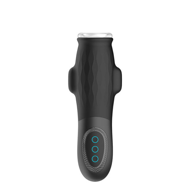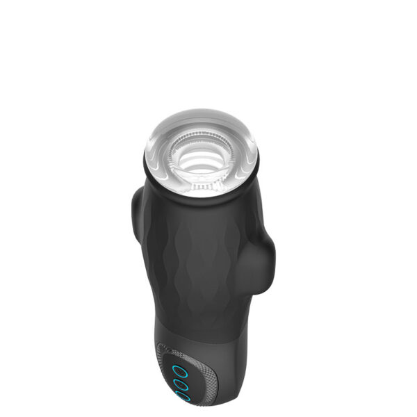 Masturbador recarregável com interior texturizado, 10 modos de vibração e 5 modos de sucção.