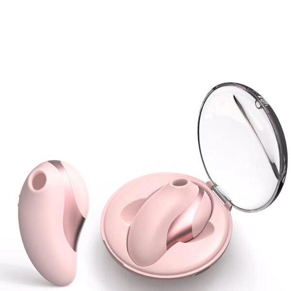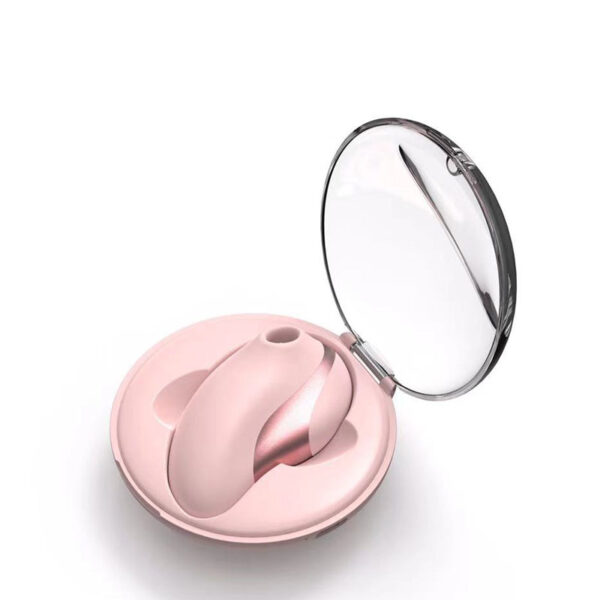 Mini estimulador feminino com ondas de pressão recarregável, com estojo smart que permite carregar a bateria por meio de contato. Possui 10 modos de vibração e 5 modos de ondas de pressão.