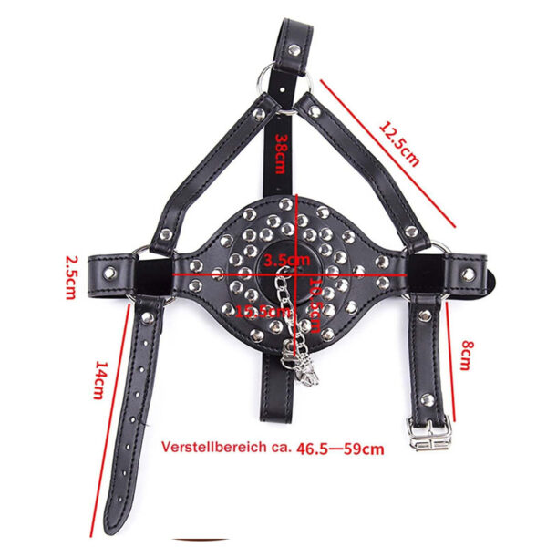 Mordaça com mangueira retrátil acoplada em funil. Possui arreio completo para a cabeça com fivelas, proporcionando uma melhor fixação e segurança da mordaça. Acompanha peneira para colocar no duto.
