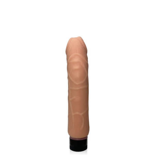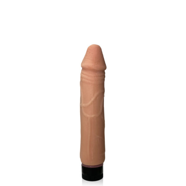 Pênis realístico 22,5 cm com vibração multivelocidade, possui glande e veias.