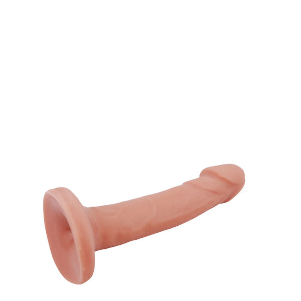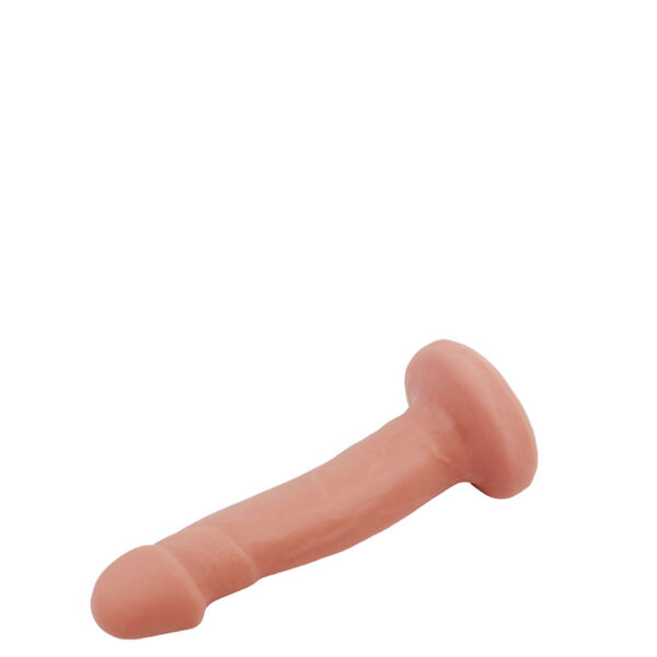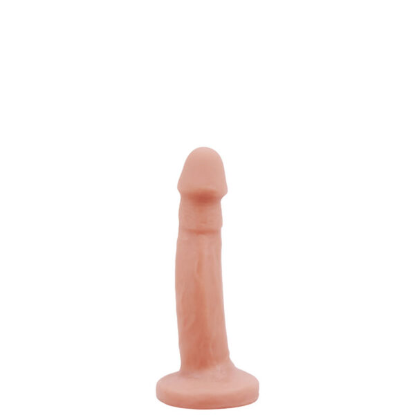 Pênis realístico com ventosa, possui corpo liso e glande pequena.
