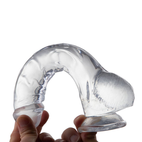 Pênis Realístico com Ventosa, Possui Glande Pequena e Escroto – GLASSY DILDO – DI-055