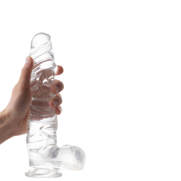 Pênis Realístico com Ventosa, Possui Glande Pequena e Escroto – GLASSY DILDO – DI-056