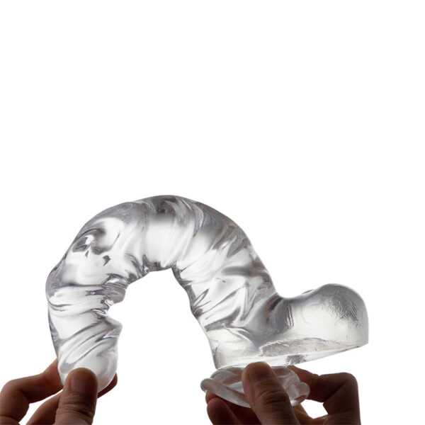 Pênis Realístico com Ventosa, Possui Glande Pequena e Escroto – GLASSY DILDO – DI-057