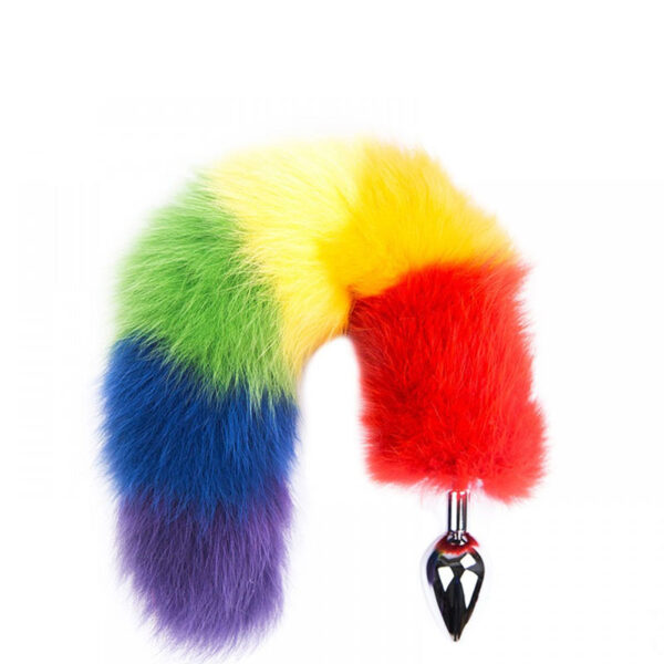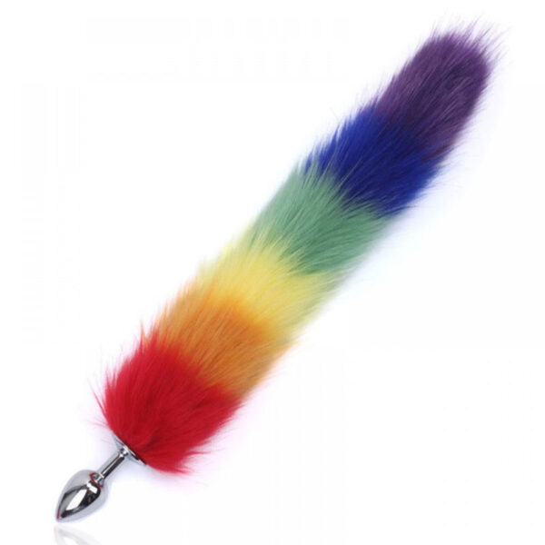 Plug anal em metal com cauda colorida.