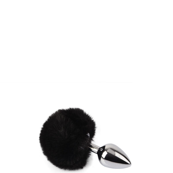 Plug anal em metal médio com pompom preto.