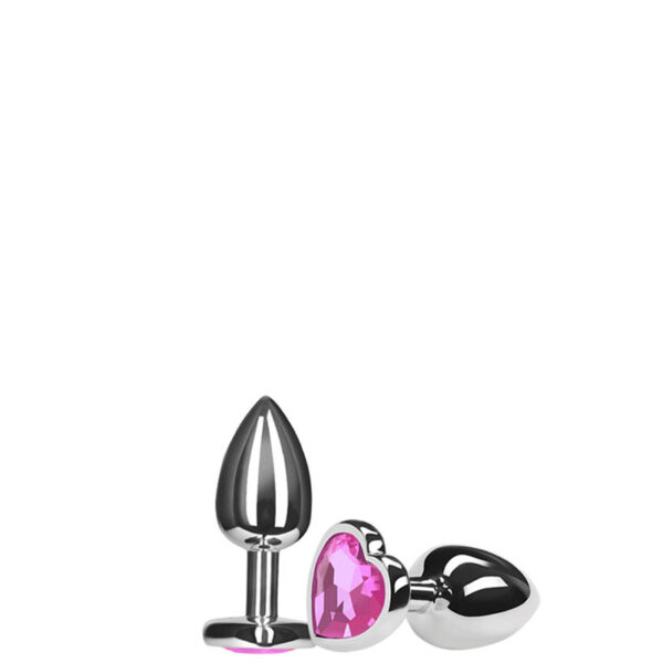 Plug anal formato coração em alumínio grande, possui em sua base uma pedra colorida lapidada como uma jóia.