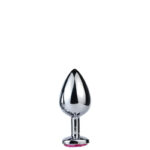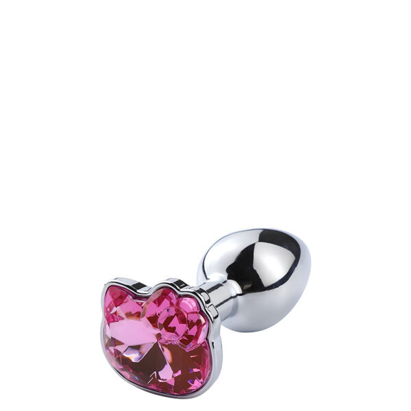 Plug anal grande em metal. Possui em sua base formato gatinha e uma pedra colorida lapidada como uma jóia.
