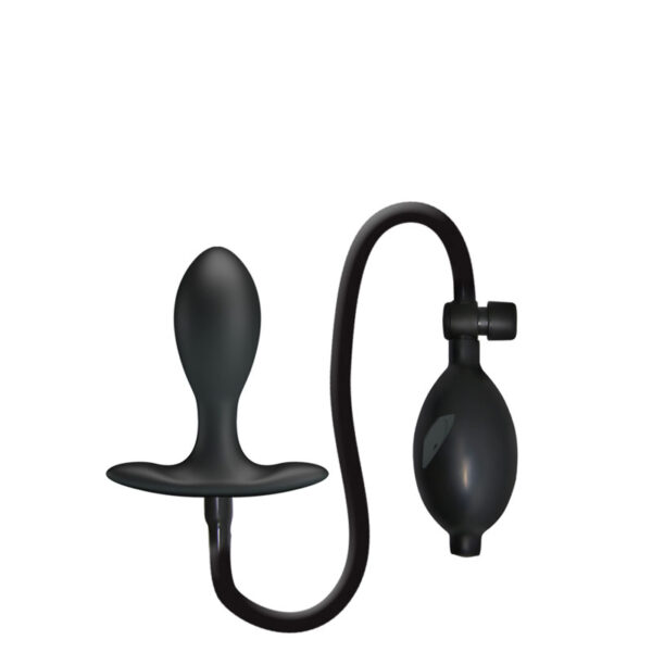 Plug anal inflável com peso interno. Possui bomba de pressão manual e válvula descompressão do ar.