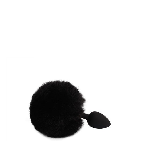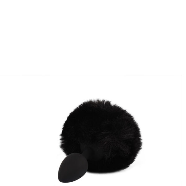 Plug anal pequeno em silicone com pompom preto.
