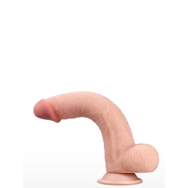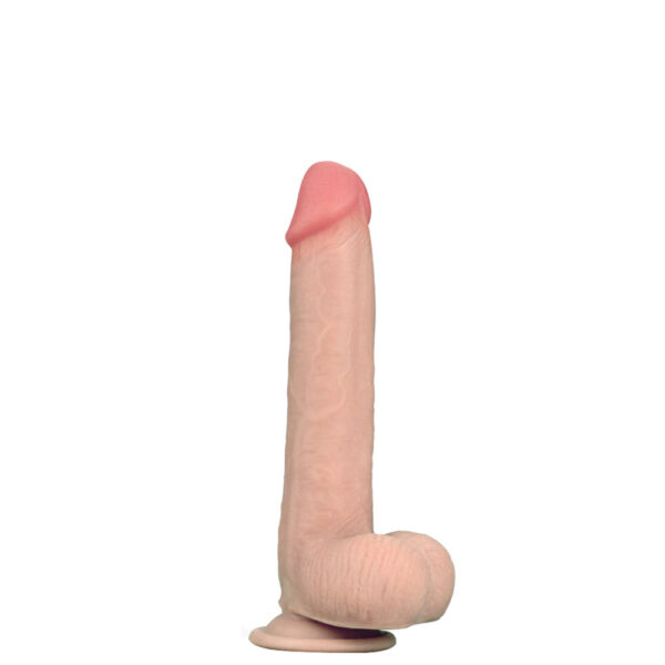 Prótese realística 23 cm, com camada de dupla densidade, macio por fora e interior firme, possui escroto, veias salientes, diâmetro avantajado e ventosa de fixação.