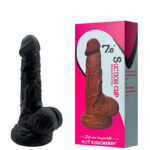 Prótese realística com escroto, veias salientes, glande e ventosa.
