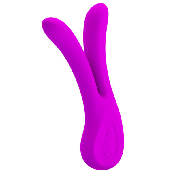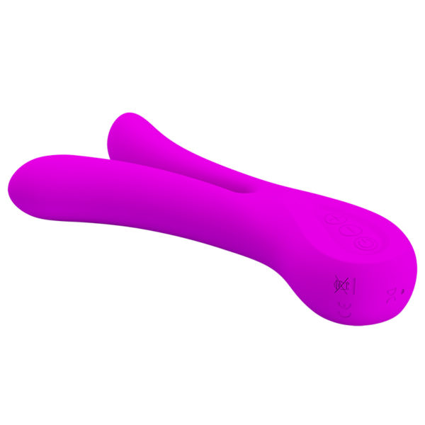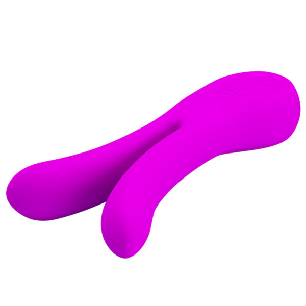 Vibrador recarregável com duas pontas e 12 modos de vibração.