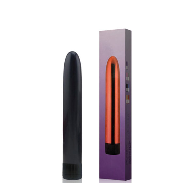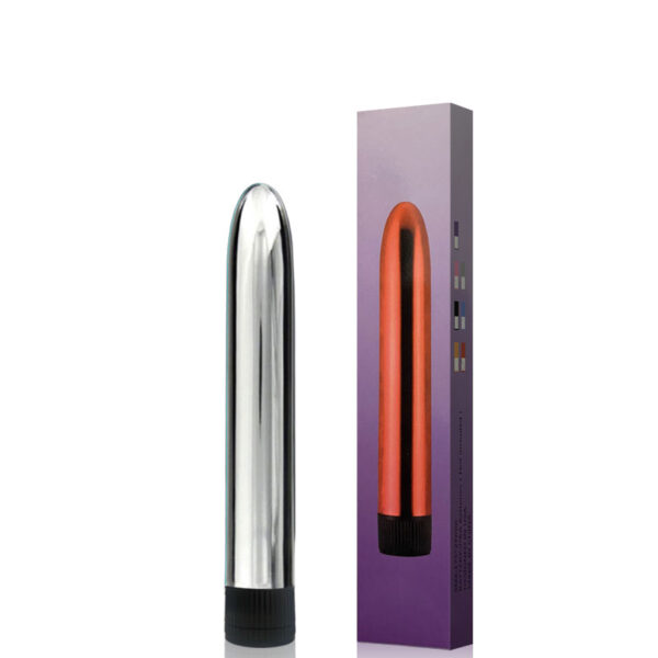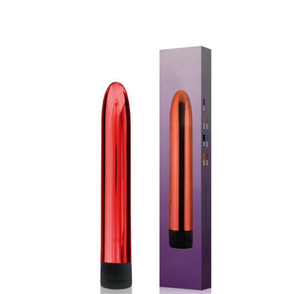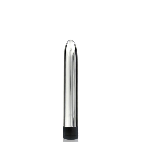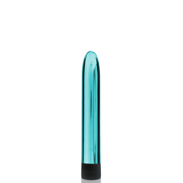 Vibrador personal 17 cm. Possui superfície lisa e um motor multivelocidade controlado a partir de um botão giratório em sua base.