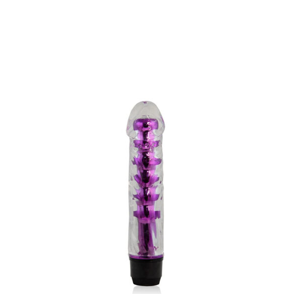 Vibrador personal com capa translúcida. Possui vibração multivelocidade.