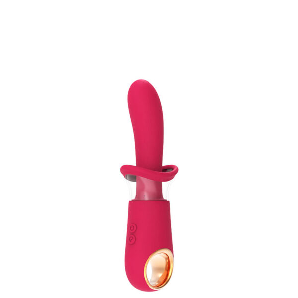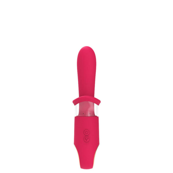 Vibrador recarregável com bomba de sucção vaginal. Possui 10 modos de vibração e 3 modos de sucção.