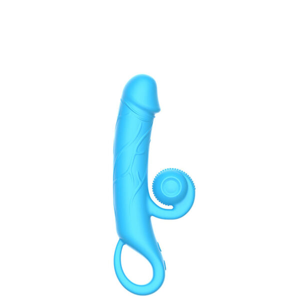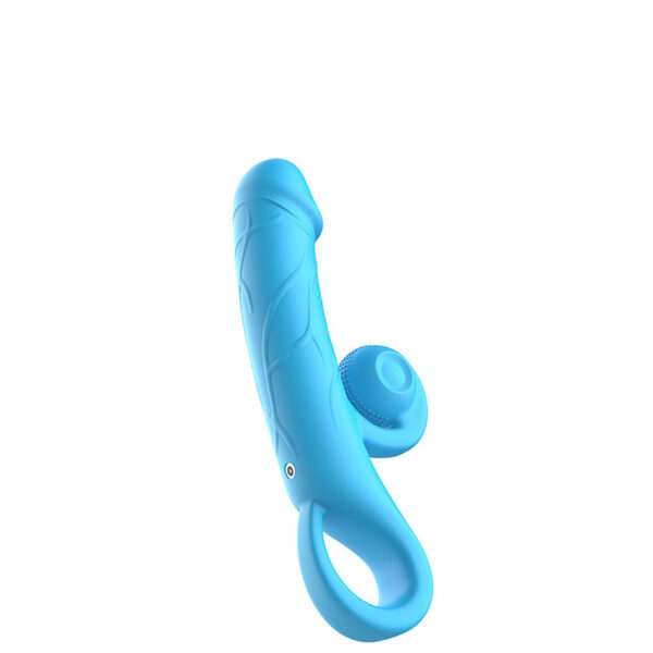 Vibrador recarregável com detalhe de glande e estimulador clitoriano vibratório. Possui 10 modos de vibração.