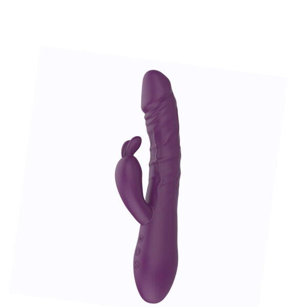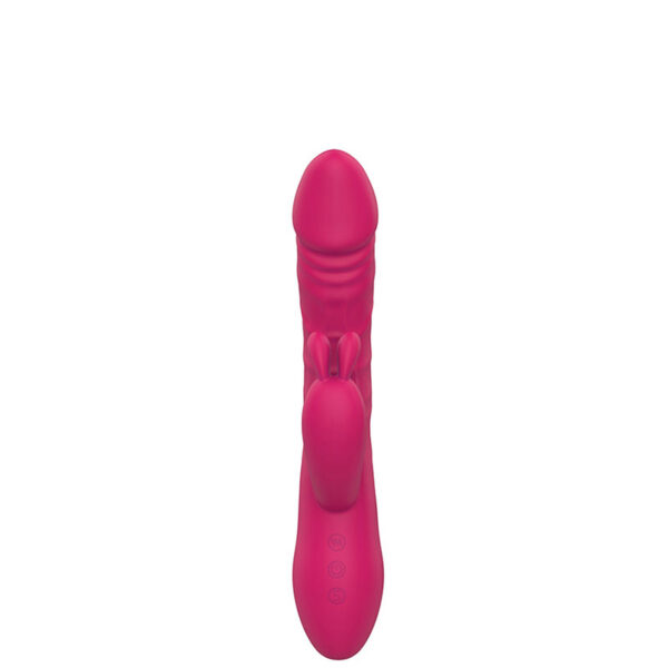 Vibrador recarregável com estimulador clitoriano formato coelho. Possui inovação na forma de transmitir sua estimulação através de 10 potentes modos de impulso que se move para frente e para trás impulsionando para fora oscilações, como uma estaca e 10 modos de vibração.