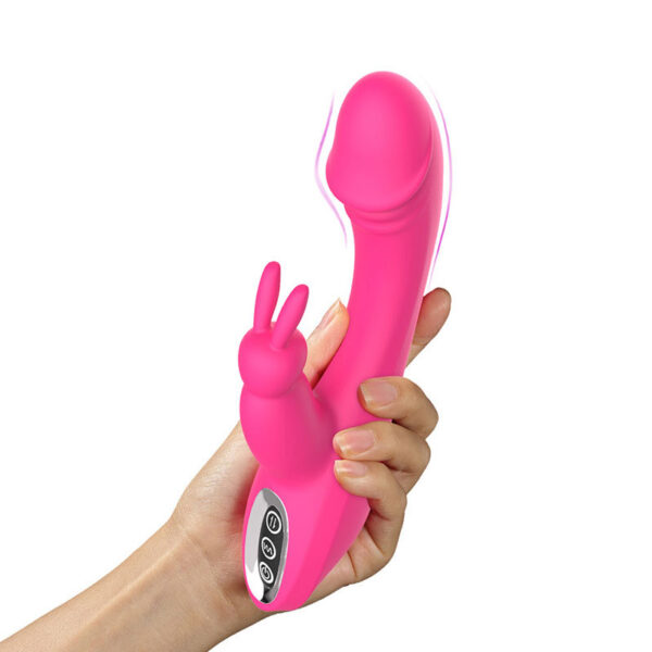 Vibrador Recarregável com Ponta Formato Glande e Estimulador Coelho – Aixi-0079