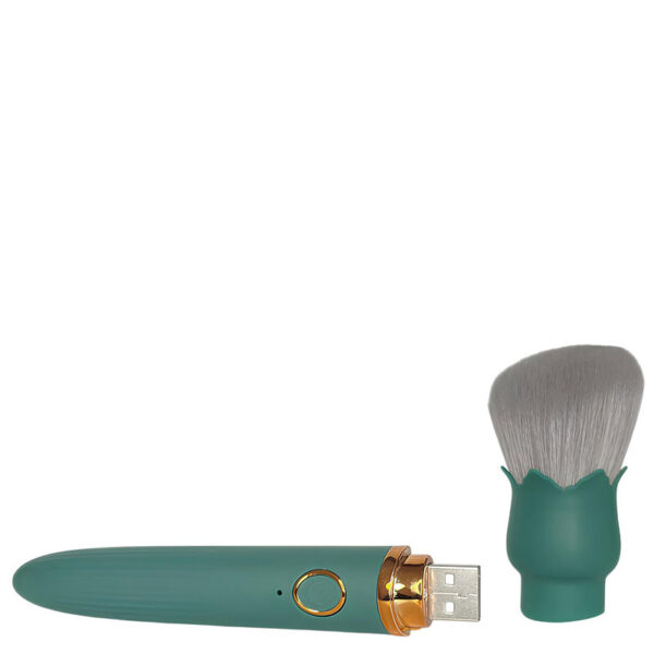 Vibrador recarregável com ponta pincel de blush. Possui 10 modos de vibração. Possui 10 modos de vibração.