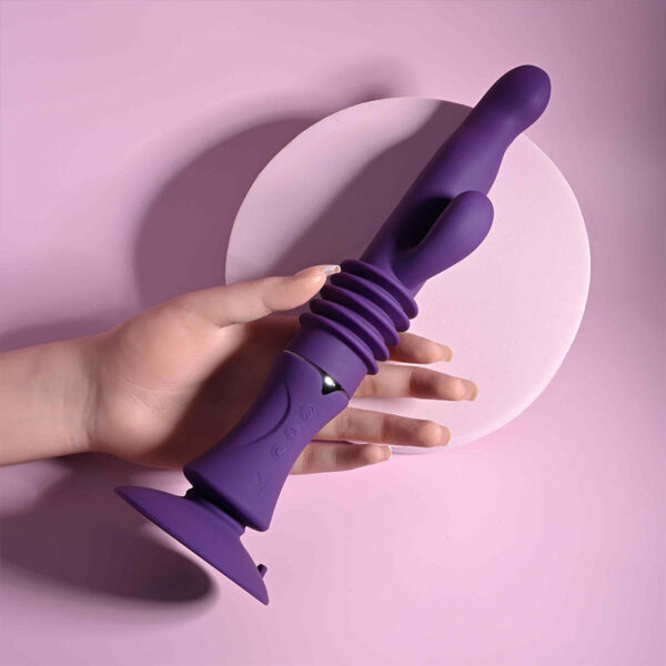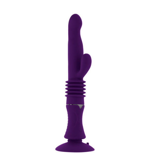 Vibrador recarregável com vai e vem com movimentos através da base e ventosa. Possui 7 modos de vibração e 3 modos de movimentos.