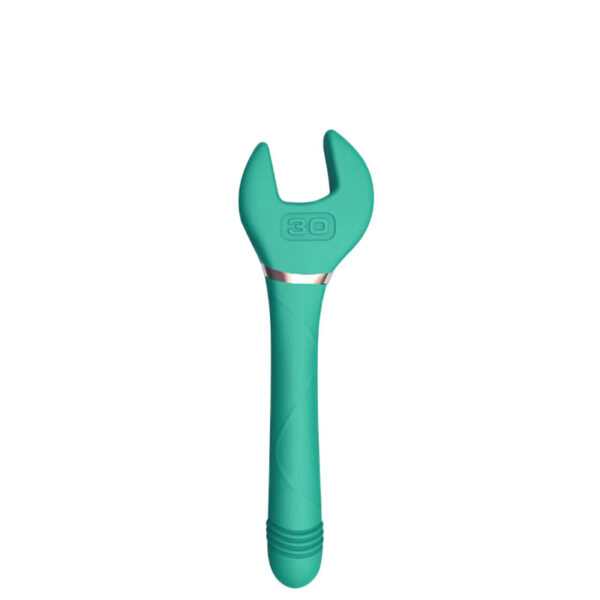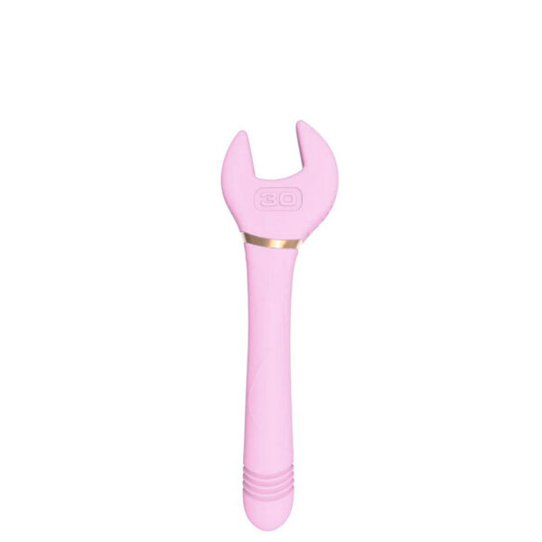 Vibrador recarregável formato ferramenta com função vai e vem em uma das pontas. Possui 10 modos de vibração.