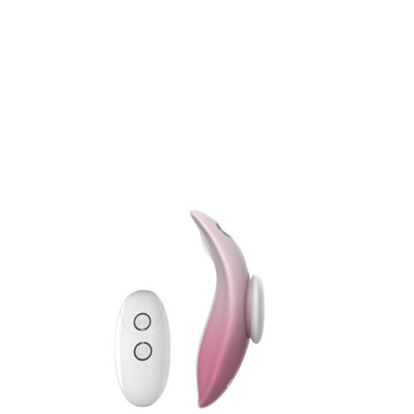Vibrador recarregável para calcinha com imã e controle remoto. Possui 10 modos de vibração.