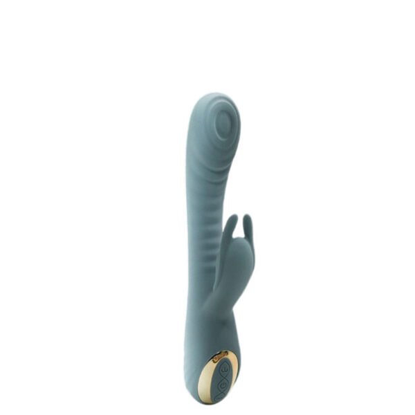 Vibrador recarregável ponto G com estimulador clitoriano formato coelho. Possui 10 modos de vibração e 5 modos de pulsação.