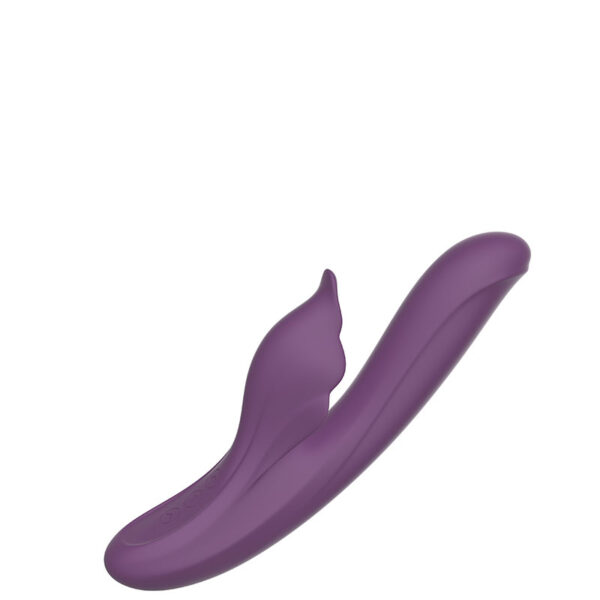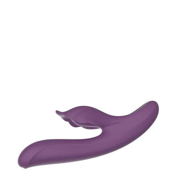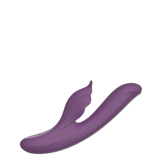 Vibrador recarregável vai e vem com estimulador clitoriano. Possui 10 modos de vibração e 7 modos de vai e vem.