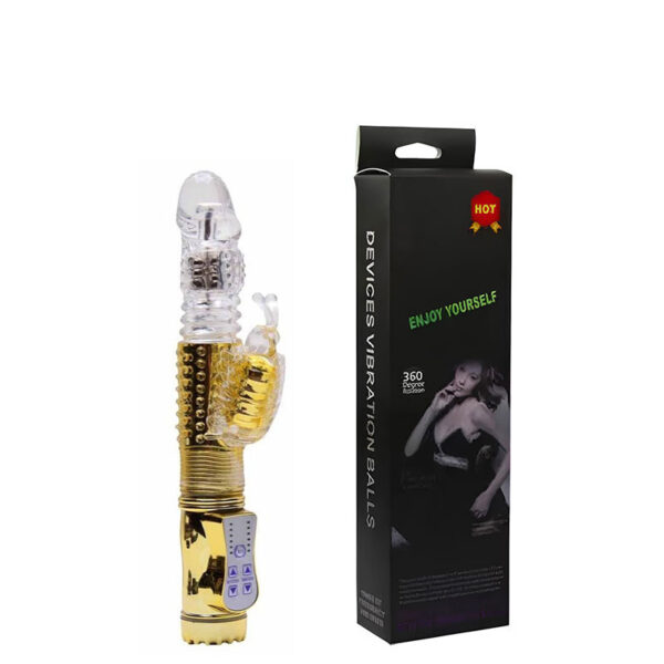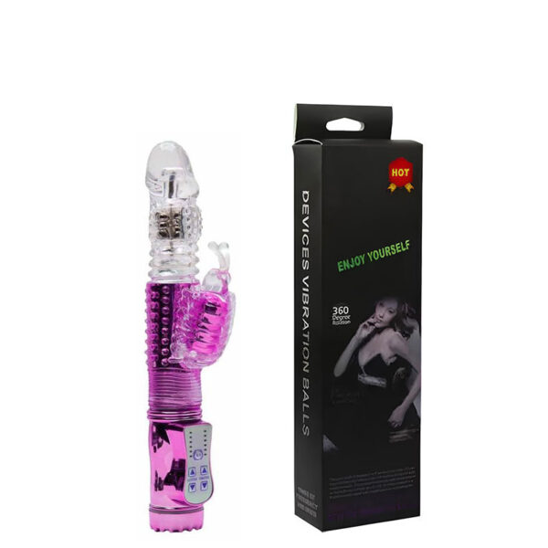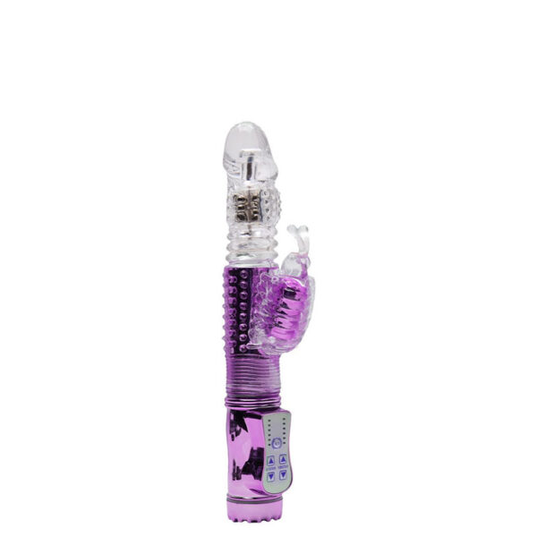 Vibrador Rotativo Recarregável Sobe e Desce com Estimulador Clitoriano Borboleta e 36 Modos de Vibração – RB-180201